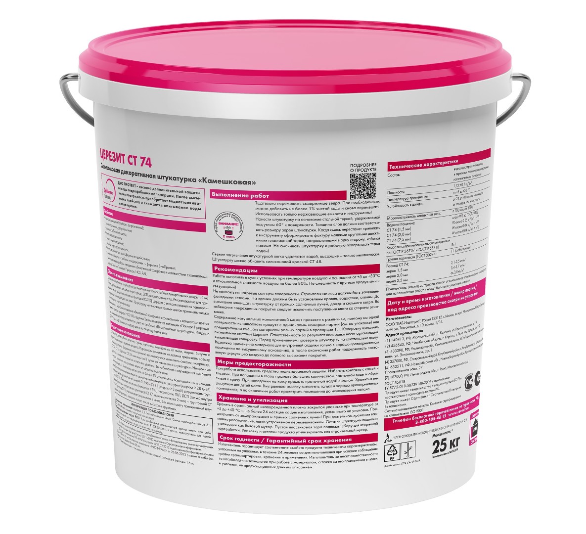 Описание товара: "Штукатурка Ceresit силиконовая СТ 74 2,5 мм "камешковая", база (25 кг)"