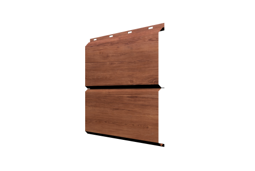 - В отличие от облицовки фасада деревом, металлический сайдинг «ЭкоБрус GL» прост в монтаже и не требует дополнительного послемонтажного ухода.