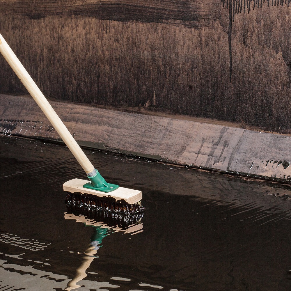Мастика легко наносится на поверхности любой формы с помощью шпателя или кисти. Она создаёт надёжное и прочное гидроизоляционное покрытие без швов.