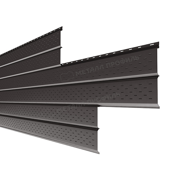 Софит МЕТАЛЛ ПРОФИЛЬ перфор. Lбрус-XL-14х335 (VikingMP E-20-6005-0.5) – это планки сайдинга Lбрус, на поверхности которых нанесены мелкие отверстия. Применяется для подшивки кровельных свесов. Софит придаёт завершённый и аккуратный вид зданию. Отверстия в планках обеспечивают свободную циркуляцию воздуха под кровлей и предотвращают появление грибка, конденсата, плесени.Покрытие VikingMP® E: