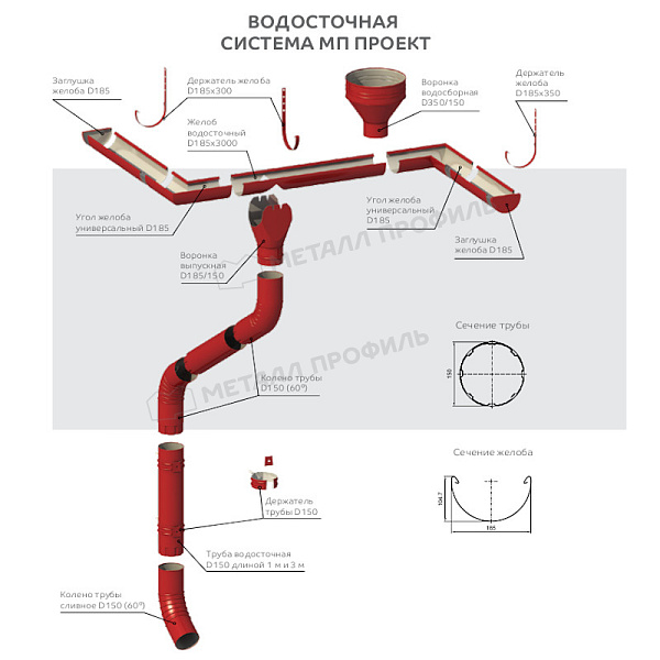 Система водоотведения предназначена для защиты крыши и стен от агрессивного влияния влаги, Воронка выпускная МЕТАЛЛ ПРОФИЛЬ ПРОЕКТ D185х150 Ral 3011 — её неотъемлемая часть. Оцинкованная сталь в основе обеспечивает прочность; проект великолепно выдерживает механические воздействия и не ржавеет. Надёжное покрытие Полиэстер усиливает декоративные свойства и оказывает положительное влияние на срок эксплуатации Воронка выпускная МЕТАЛЛ ПРОФИЛЬ ПРОЕКТ D185х150 Ral 3011. Водосточные системы цвета 3011 Коричнево-красный сочетается со многими оттенками покрытий кровель и фасадов.Покрытие Полиэстер: